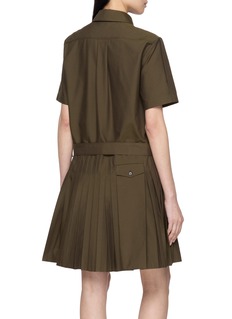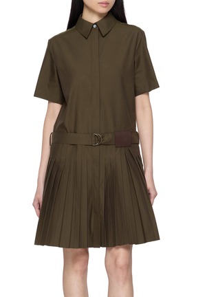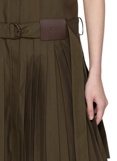 Structured yet fluid, this dress from LOEWE is crafted in lightweight cotton blend gabardine, falling into crisp pleats that move with architectural grace. The adjustable D-ring self belt defines the waist with utilitarian polish—wear it with loafers for day or sculptural heels after dark.