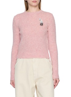 LOEWE 将 Louis Wain 的未来主义幻想与精湛的手工格调细腻融合。这款刷毛羊毛针织衫,胸前与背部饰有猫咪刺绣图案,设计灵感源自 Louis Wain 的“Futurist Cats”陶瓷作品系列,为你的日常穿搭融入艺术笔触。