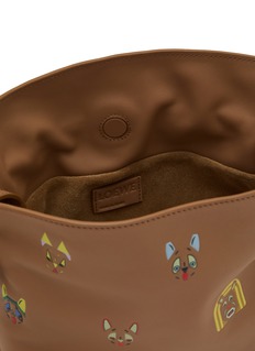 Immerse yourself in the playful elegance of Loewe's tan leather bag, adorned with whimsical animal motifs that bring a touch of whimsy to any ensemble. This expertly crafted piece is made from supple leather, ensuring durability and a luxurious feel. The spacious interior is perfect for accommodating your daily essentials, while the secure zipper closure keeps them safe. Featuring a comfortable, adjustable strap for ease of carrying, this bag is both practical and stylish.