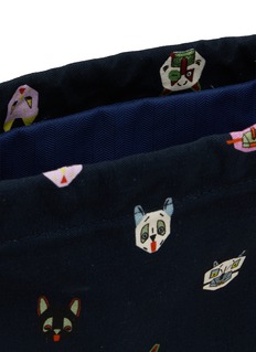 Inject a dose of playful sophistication into your daily essentials with Loewe's navy drawstring pouch, adorned with a colorful medley of whimsical animal motifs. This charming accessory is crafted from a durable, high-quality fabric that ensures longevity and ease of maintenance. The vibrant embroidered details showcase Loewe's artistic flair and add an engaging visual appeal to the pouch. Its drawstring closure provides quick and secure access to your items, making it an ideal choice for on-the-go storage.