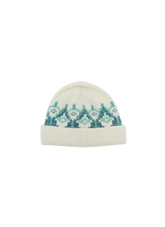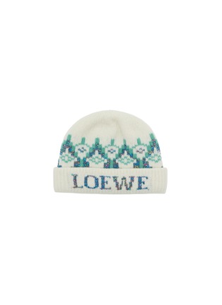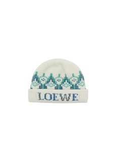 A winter classic reworked with quiet radiance, this beanie balances heritage Fair Isle intarsia with subtle sequin yarns that catch the light. Knitted in a medium-weight ribbed wool blend, it offers warmth with a refined shimmer, elevating everyday cold-weather dressing through LOEWE’s artisanal sensibility.