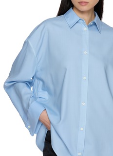 挺括肌理传递柔和调性,宽松廓形暗藏叠穿巧思,细节彰显品牌质感。LOEWE 以 “极简与个性” 为内核,在衬衫中传递通勤质感。