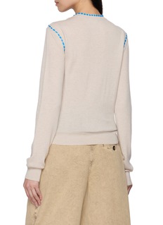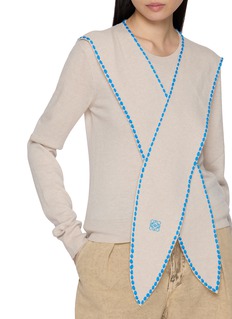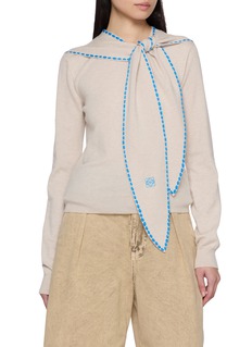 LOEWE 擅长以细节碰撞打造个性单品,这款针织衫以围巾领强化氛围感,撞色滚边丰富视觉层次,软糯针织面料兼顾舒适与精致。
