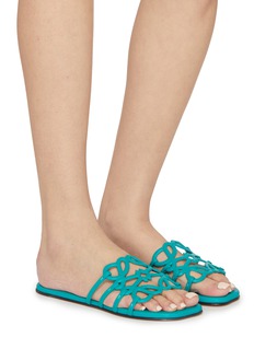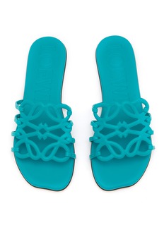 LOEWE presents architectural minimalism with these statement leather slides. The intricate strappy design features meticulous craftsmanship, whilst the sleek monochromatic finish exudes contemporary sophistication. A masterful expression of the brand's commitment to innovative design language and artistic sensibility.