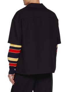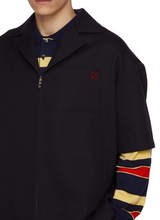 LOEWE 以复古学院风诠释街头美学,这件衬衫用斜纹面料营造沉稳质感,短袖增添活力,胸前的 “L” 刺绣口袋是标志性细节。搭配同色系西裤,可演绎复古又潮酷的通勤造型。