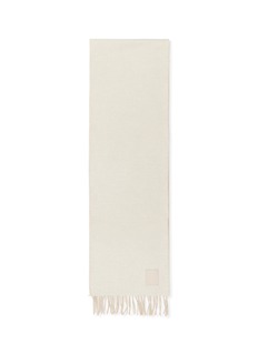 Elevate your winter wardrobe with LOEWE’s luxurious cream fringe scarf, crafted from the softest wool for unparalleled comfort and warmth. Its minimalist design and delicate fringe detailing add a touch of effortless elegance to any ensemble.