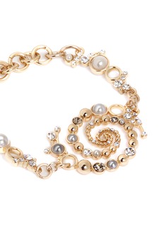 Lulu Frost的配饰复古优雅,这款手链的设计更是别致精巧,模拟水中漩涡造型,大小不一的圆圈犹如水泡,加上仿水晶、人造珍珠的镶嵌点缀,颇具动感,定会让您爱不释手。