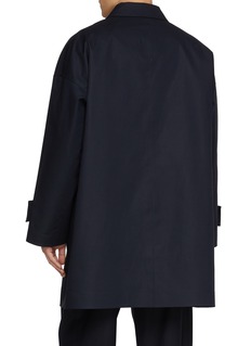 An evolution of the Mackintosh’s signature overcoat, this Humbie iteration reinterprets its sweeping A-line silhouette with a crisp Raintec cotton shell that holds structure and repels the elements. Its pared-back lines meet subtle modernity through cuff adjusters and rivet-punctuated flap pockets—an easy complement to tailoring and off-duty layers alike.