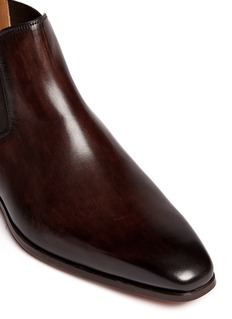 Magnanni这款鞋履借鉴充满复古气息的切尔西短靴,深咖啡色真皮经擦色处理,色泽富有层次感之余更带着淡淡光泽,弹力拼贴鞋筒穿着轻松方便,结合品牌推崇的优秀做工,十分适合追求奢华品质的男士。