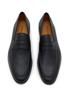 These Magnanni loafers are crafted from textured black leather, offering a sophisticated and timeless look. The classic design features a streamlined silhouette with a neat strap across the vamp, lending an air of elegance to any ensemble. Perfect for formal occasions or professional settings, these loafers are essential for the modern gentleman who values both style and comfort.