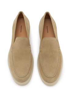 Magnanni's relaxed loafer showcases Spanish shoemaking heritage through soft suede construction and meticulous hand-stitched detailing. The streamlined slip-on silhouette features a classic moc-toe design, tonal topstitching, and lightweight sole for effortless summer style. A versatile casual essential that bridges laid-back elegance with Mediterranean craftsmanship and year-round wearability.
