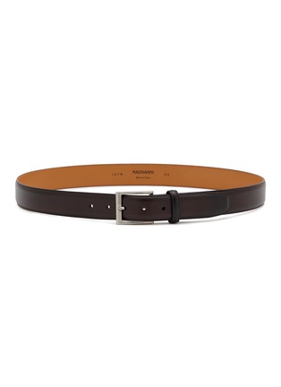 Magnanni 凭借传统手工技艺及独特的染色效果打造出优雅鞋履和皮具,色泽从深到浅自然过渡,像旧时光在皮面上留下的温柔光晕。这款腰带以线条感金属扣融入质感粒面皮革,为您的装束带来格调一瞥。