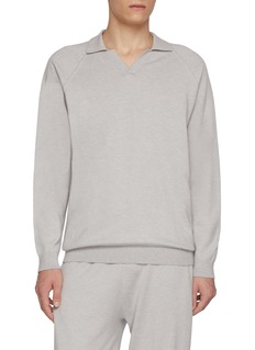 Redefining casual refinement, this rugby-style knit polo merges the comfort of cotton-cashmere with a clean, contemporary profile. The open V-neck and relaxed drape evoke effortless sophistication—ideal for layering or elevating everyday ensembles.