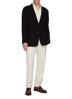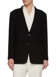 Merging the refinement of tailoring with the ease of knitwear, this Magnus & Novus jacket is rendered in a soft wool-linen-cashmere blend. Its textured knit construction lends natural depth and movement, making it an ideal piece for trans-seasonal layering with understated polish.