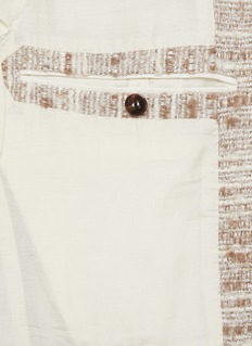 This jacket is woven from a refined mélange of wool, linen, and technical fibres, offering tactile richness and visual depth. Its soft structure and understated palette exude casual refinement — ideal for pairing with cream tailoring or tonal separates for spring layering.