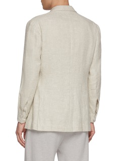 This Magnus & Novus blazer captures refined ease through Solbiati’s signature cotton-linen weave, known for its airy texture and artisanal character. With an unlined construction and a softly structured silhouette, it’s the epitome of relaxed tailoring for modern summer dressing.