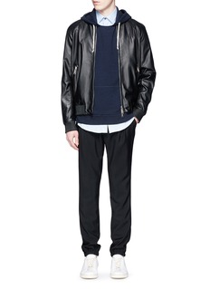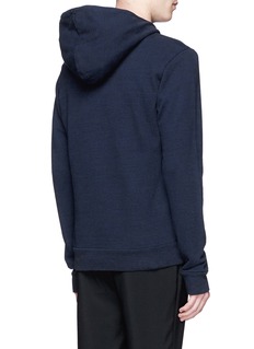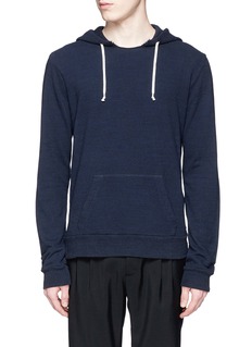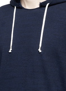 马吉拉时装屋常以低调方式展现解构美学,这款卫衣采用品牌最喜爱的深色调,抽绳连帽款式与毛边设计构成独特的视觉效果,简单配搭破洞水洗牛仔裤,让您不经意展现洒脱不羁的酷感魅力。