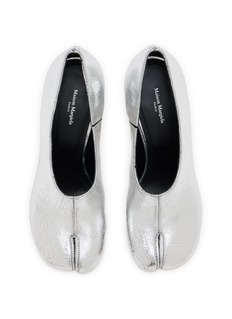 Maison Margiela 圆柱粗跟高跟鞋以雕塑感廓形与精致金属光泽彰显当代优雅。极简设计采用流线型套脚结构,方头设计搭配圆柱粗跟与对比细节,内衬采用光滑皮革。呈现建筑美学与现代女性气质的碰撞。