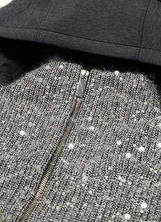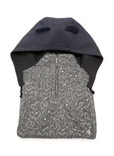 Maison Michel 是源自法国的奢华帽饰品牌,自1936年创立以来,以其精湛的手工艺和优雅设计闻名于世。这款帽子以连帽衫廓形打破日产,融合氯丁橡胶与灰色针织羊毛材质,点缀银色亮片,打造兼具保暖与优雅的现代风范。