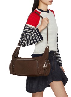Crafted in supple cow nubuck, this hobo bag by MARGESHERWOOD redefines everyday utility with sculptural ease. Designed with a boxy east-west silhouette, multiple zip pockets and a wide shoulder strap, it embodies quiet luxury—perfect from weekday errands to weekend styling.