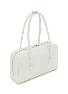 Discover the timeless elegance of MARGESHERWOOD's Soft Boston leather handbag. This beautifully crafted piece features in premium leather and an E/W silhouette, offering a vintage charm that complements any ensemble. Designed with practicality in mind, it boasts a spacious interior and a sturdy top handle, ensuring it is as functional as it is fashionable.
