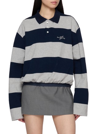 Blending collegiate stripes with playful softness, this long-sleeve polo shirt by MARGESHERWOOD is crafted from pure cotton for everyday ease. The ballooned hem subtly reshapes the classic silhouette, while delicate Linus embroidery adds a nostalgic, lighthearted finish.