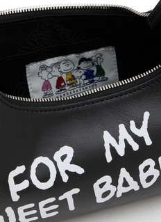 A graphic statement with a nostalgic wink, this Peanuts collaboration sees MARGESHERWOOD reinterpret the hobo bag in smooth cow leather. The handwritten-style slogan animates the sculpted silhouette, while the softly curved form sits comfortably under the arm for everyday city wear.