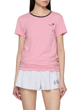 A soft nod to retro charm, this dotted T-shirt by MARGESHERWOOD blends playful femininity with everyday ease. Crafted in stretch-infused cotton, it’s finished with a contrast neckline and a discreet Sally motif—perfect with lounge shorts, denim, or layered under knits.