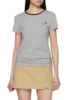 A nostalgic graphic language meets soft femininity in this dotted T-shirt by MARGESHERWOOD. Rendered in stretch cotton, the all-over micro-dot pattern is accented with a contrast neckline and a delicate Sally motif, evoking Peanuts’ gentle charm for everyday wear.