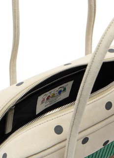 Playful nostalgia meets tactile craftsmanship in this Peanuts collaboration by MARGESHERWOOD. Crafted from calf leather and suede, the soft Boston silhouette is animated with polka-dot and striped panels, balancing graphic charm with a structured form suited to everyday polish or relaxed city wear.