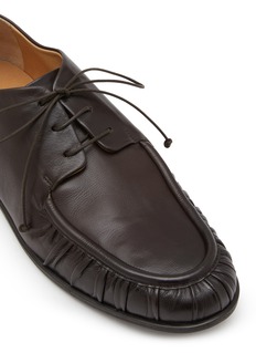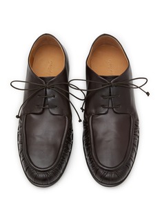 相比牛津鞋,德比鞋的襟片为开放式,正式格调中更有休闲自由。Marsèll 的这款德比鞋搭配纤细绳结头系带,饶有个性。