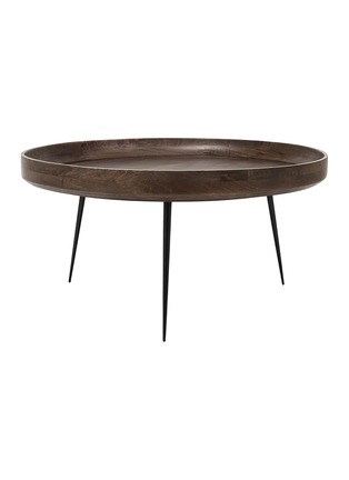 A poetic balance of tradition and restraint, the Bowl Extra Large table draws on Indian wood-turning heritage with a distinctly Scandinavian sensibility. Designed by Ayush Kasliwal, the lathe-turned mango wood top in Sirka Grey rests on slender steel legs—crafted to anchor spaces with quiet sophistication.