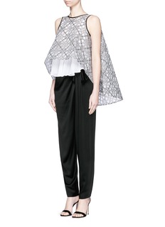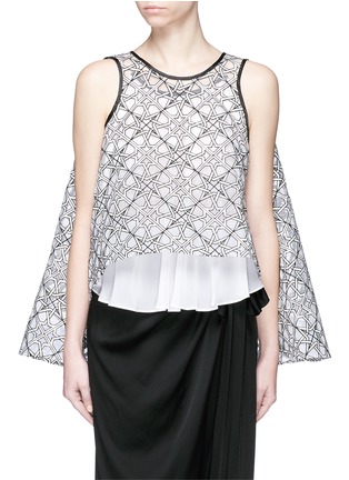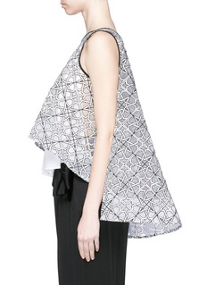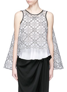这款犹如艺术品般精致的连衣裙来自Maticevski 2016早春系列,设计师Toni Maticevski擅长建筑感和立体感极强的设计,这款采用硬挺的玻璃纱面料制作,表面缀有黑白色星形刺绣,结合丰盈的伞状衣摆,繁复而细致,只需搭配简约下装和一双高跟鞋即可成为众人焦点。