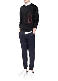 麦蔻亚历山大麦昆这款卫衣展示了品牌独有的叛逆魅力,选择最常用的黑色为主调,正面的网眼拼贴令底部双层重叠的粉红色品牌标志隐约透出,既神秘又别具趣味,让您打造充满特色的运动休闲风格。