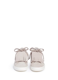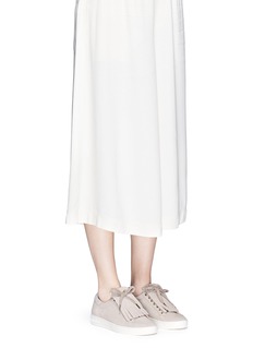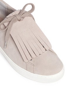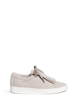 MICHAEL Michael Kors的鞋履设计舒适实穿,是打造不同造型的百搭单品。这双KEATON KILTIE运动鞋运用了素雅的灰色调,绒面真皮配以流苏装饰布,令设计更见简约随性,十分适合爱清爽自然打扮的您。