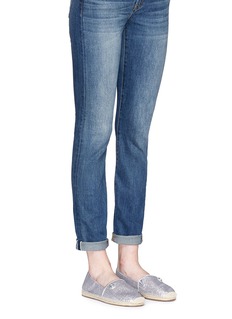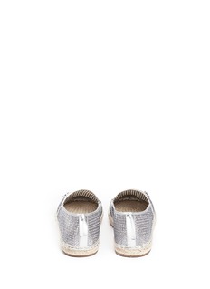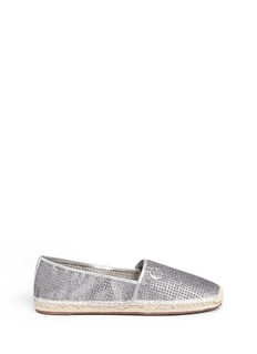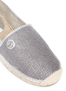 源自法国的麻编鞋轻巧舒适,一直是不少时尚丽人心目中的必备鞋款。MICHAEL Michael Kors这款利用银色闪粉网眼面料制作,大大提升了其透气度,漆皮拼贴围边与闪粉鞋面相辉映,休闲自然而不失前卫感,是搭配裙装或短裤的不二之选。