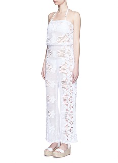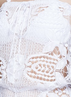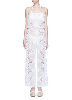 Miguelina这款连体裤是打造休闲沙滩造型的理想选择。清新的白色结合精致的钩花蕾丝,衬托脱俗的迷人气质,加上不经意的透视效果,让您由外到内散发性感妩媚的女人味。