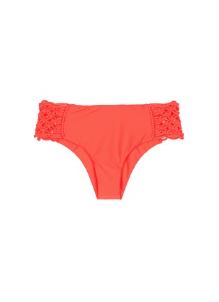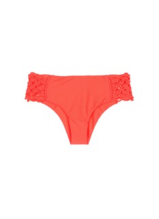 Mikoh的泳装充满年轻活力,这款比基尼泳裤两侧的镂空织花图案给人精致优雅的感觉,鲜艳夺目的荧光橙衬托您的肤色更加明亮动人,时刻展现您迷人独特的海滩魅力。