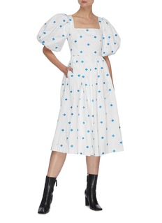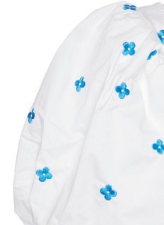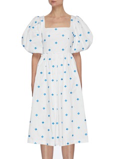 MING MA这款连衣裙通身布满了优雅浪漫的蓝色调花卉刺绣,并结合丰盈挺括的泡泡袖与略显复古的方领设计,使之更显可爱俏皮感与迷人女人味,助你轻松打造靓丽迷人的淑女造型。