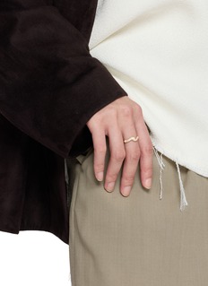Missoma 这款戒指以雪花融化的自然曲线为灵感,金色光泽映衬雕塑感造型,轻盈包裹指间。点缀细腻锆石,低调中蕴含灵动光芒。