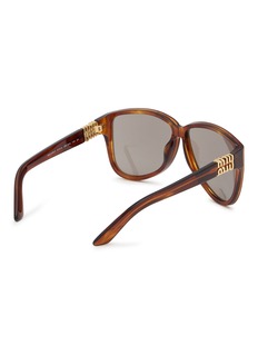 Channel timeless elegance with these Miu Miu sunglasses, featuring a classic tortoiseshell pattern with oversized square frames that exude a retro-inspired charm. The gold-tone accents at the temples add a touch of luxury, making these sunglasses a perfect accessory for those who value both style and sophistication.