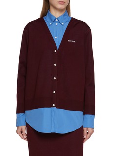 哲学思维、浪漫梦幻和试验灵感相融成就了 Miu Miu 特有的品质。这款开衫以衬衫面料与柔软针织材质结合,打造出独特的层叠视觉效果,胸前 logo 则添一抹低调精致细节。