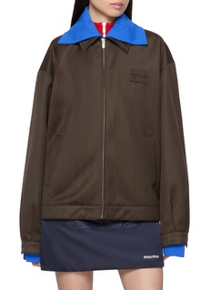 Miu Miu 以甜酷混搭诠释少女风格,这款夹克用撞色领袖打破沉闷,拉链开合利落便捷,立体标识衬出品牌质感。搭配迷你半裙,可演绎灵动的复古甜酷风。