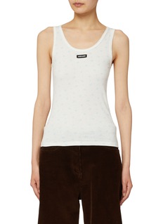 Miu Miu 擅用色彩与细节营造甜酷氛围,风格鲜活而精致。这款背心以清新花卉图案点缀简洁廓形,胸口 logo 徽标细节更添品牌辨识度,融合休闲与精致气息。