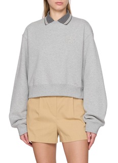 自带轻复古感的套头卫衣,撞色翻领藏巧思,短款剪裁利落显高。宽松袖型适配多身形,浅灰主色适配多风格,搭短裤显松弛,配裤装显随性,是 Miu Miu 标志性的甜酷休闲款。