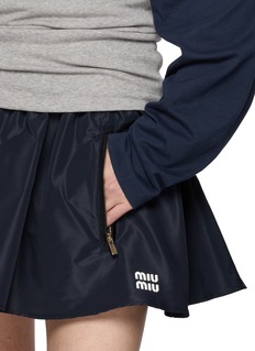 This Miu Miu skirt effortlessly combines playful charm with a sleek, modern aesthetic. The design features a luxuriously smooth fabric that creates a beautiful drape, while the gathered waist adds a touch of volume for a dynamic silhouette. Zippered pockets introduce a practical element with a contemporary edge, making this skirt as functional as it is fashionable.