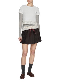 哲学思维、浪漫梦幻和试验灵感相融成就了 Miu Miu 特有的品质。这款长 T 恤下摆缀有精美蕾丝边,恰到好处地平衡了含蓄与性感。