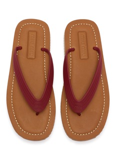 Step into summer with style in these Miu Miu flip-flops. Featuring minimalist straps, this pair is designed for both comfort and refined appeal, perfect for those who appreciate a streamlined aesthetic without sacrificing functionality.