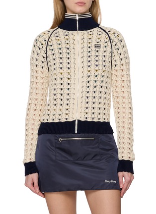 Miu Miu 擅用色彩与细节营造甜酷氛围,风格鲜活而精致。这款开衫以拉链开合焕新经典版型,轻盈针织纹理与摩登细节相融,塑造休闲雅致的穿搭风格。