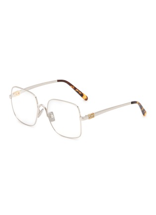 Defined by clean geometry and subtle ornamentation, these optical glasses reflect Miu Miu’s refined yet playful approach to everyday design. The slim metal construction is accented with gold-tone detailing and tortoiseshell-effect tips, lending polish to both tailored and casual looks.